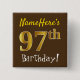 Brown, Faux Gold 97th Birthday, With Custom Name Pinback Button