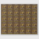 This wrapping paper design features a message like "HAPPY 19th BIRTHDAY", with the "19th" having a faux/imitation gold appearance. It also features a name that can be customized, and a brown colored background. It could perhaps be used when wrapping gifts being given for somebody’s nineteenth birthday. [~Z0000133]