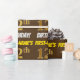 This wrapping paper design features a message like "FIRST-NAME’S 12th BIRTHDAY!", with the "12th" having a faux/imitation gold-like color appearance, and with the name and "BIRTHDAY" in a fun, bold font. The name can be personalized, and the background is colored brown. Wrapping paper like this could perhaps be used when wrapping birthday gifts being given to somebody in celebration of their twelfth birthday. [~Z0000211]