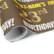 This wrapping paper design features a message like "FIRST-NAME’S 23rd BIRTHDAY!", with the "23rd" having a faux/imitation gold-like color appearance, and with the name and "BIRTHDAY" in a fun, bold font. The name can be customized, and the background is colored brown. Wrapping paper like this could perhaps be used when wrapping birthday gifts being given to somebody in celebration of their twenty third birthday. [~Z0000211]