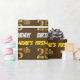 This wrapping paper design features a message like "FIRST-NAME’S 25th BIRTHDAY!", with the "25th" having a faux/imitation gold-like color appearance, and with the name and "BIRTHDAY" in a fun, bold font. The name is customizable, and the background is colored brown. Wrapping paper like this could perhaps be used when wrapping birthday gifts being given to somebody in celebration of their twenty fifth birthday. [~Z0000211]