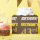 This wrapping paper design features a message like "FIRSTNAME’S 43rd BIRTHDAY!", with the "43rd" having a faux/imitation gold-like color appearance, and with the name and "BIRTHDAY" in a fun, bold font. The name can be personalized, and the background is colored brown. Wrapping paper like this could perhaps be used when wrapping birthday gifts being given to somebody in celebration of their forty third birthday. [~Z0000211]
