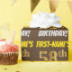 This wrapping paper design features a message like "FIRST-NAME’S 58th BIRTHDAY!", with the "58th" having a faux/imitation gold-like color appearance, and with the name and "BIRTHDAY" in a fun, bold font. The name can be customized, and the background is colored brown. Wrapping paper like this could perhaps be used when wrapping birthday gifts being given to somebody in celebration of their fifty eighth birthday. [~Z0000211]