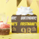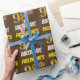 This wrapping paper design features a message like "FIRSTNAME’S 98th BIRTHDAY!", with the "98th" having a faux/imitation gold-like color appearance, and with the name and "BIRTHDAY" in a fun, bold font. The name can be customized, and the background is colored brown. Wrapping paper like this could perhaps be used when wrapping birthday gifts being given to somebody in celebration of their ninety eighth birthday. [~Z0000211]