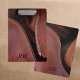 This unique clipboard design, inspired by rich brown leather and an unzipped brass zipper, has the look of fine leather with piping and stitching. It's sophisticated while being a fun twist on faux leather. Personalize with a Name or Initials for a stylish and distinctive gift.