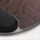 The plastic backing is nice and sturdy. The grippy pads underneath keep the mouse pad where I put it on my table. The pad the mouse sits on is cut well to fit the backing. The wrist pad is perfectly soft, supportive, and thick. I'm left-handed, and this mouse pad works just as well for me as it does for my right-handed friends. I'm the designer of HippieClecticHope products. I'm blown away by how well my intricate fractals turn out on the tangible items in the Zazzle Marketplace. This particular mouse pad ***appears*** like a 3D object... A mathematically-engineered rainbow black opal, inlaid under transparent fabric...