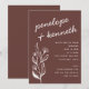 Brown Floral Rustic Modern Script Minimal Wedding Invitation