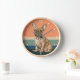 A portrait of an adorable little brown French Bulldog is the feature on this clock. The image is placed on a retro, slightly distressed striped sunset background. White numbers and diamond shaped markers around the perimeter make the clock easy to read. Perfect for anyone who has lost their heart to a Frenchie.