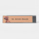 I was very pleased when I received my name plate. The brightness of the yellow caught my eye immediately because it was so true to color of the picture. The sturdiness of the material lets me know it won’t get bent or broken easily. The sturdiness of the card stock is a plus as well. The colors even on the chalkboard and apple are true to life colors. The apple looks like you can take a bite out of it.
