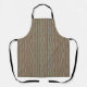 This apron has a geometric design of sort of flat-ended ovals repeating across the design in pale blue on a field of brown.