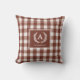 Elegant & Rustic Brown Gingham Monogram Crest Throw Pillow.