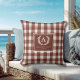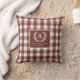 Elegant & Rustic Brown Gingham Monogram Crest Throw Pillow.