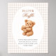 Brown Gingham Teddy Bear Neutral Baby Shower Paper Poster