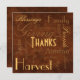 Plain white envelopes are included with paper invitations and will come to fit the invitation size you select. If you don’t need the envelopes, you may choose to not receive them by selecting the dropdown below "Envelopes" and choosing "None." If you’d like to have a design on your envelopes, you can browse all of these available envelopes to find the design that complements your Brown Giving Thanks Thanksgiving Invitation.