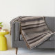 A quality printed throw has its advantages. This is a much finer weave throw than its loopier cousins, and though lighter, it is worth the investment for custom room accessorizing. The back is much prettier than the typical brown, and the fringe on the long sides very vivid, the selvage nicely done. Before photographing, I washed the throw in cold water, delicate, with a thicker woven throw the same size. On tumble dry low, this throw was dry in half the time as the other. This is a very practical quality if you use throws for furniture covers or to wrap up in frequently. The sleekness of the fabric makes it a great layer for accenting or protecting without the feeling of sitting on too much stuff. Perfect for napping or when you feel a light chill coming on. The color printing is beautiful and on this fabric, matched the design and color of my Photoshop image. This is an advantage for blending room fabrics and colors. The fringe on the short sides prints the colors from the design image and therefore varies from the side fringe. I streaked a white fractal line through the plaid pattern to give the illusion of weaving. This printed as crisp as an illusory thread, and put some white in the short side fringe, showing another advantage of print vs loomed- for artistic purposes, line lines, detail, and color integrity can be planned and preserved. My loomed throws have color limitations and more of a needlepoint texture. Print throws reproduce an exact image. The throw felt a little stiff straight out of the package, but this went away in the first delicate wash. Of course I searched the wash water for ink or bleeding and there was none.