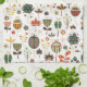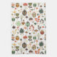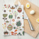 Cute brown green and red retro flowers pattern. Customizable kitchen towel template