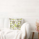 A pillow featuring a woodland themed pattern with illustrations of brown and green owls with chevron bellies, acorns, evergreen trees, and leaves.