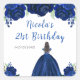 This birthday party sticker features faux glitter navy blue floral flowers and a beautiful princess with brown hair and an elegant dress. This is perfect for a birthday party.