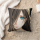 Brown Haired Blue Eyed Anime Girl Throw Pillow