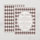 A timeless blend of classic and modern design, this wedding stationery and day-of collection features a striking brown harlequin pattern inspired by Old Hollywood glamour and old-money luxury. Perfectly curated for your bridal shower, rehearsal dinner, and wedding day, this collection brings a refined, fashion-forward statement to every celebration moment.