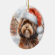 Brown Havanese Dog with Santa Hat Christmas Ceramic Ornament