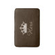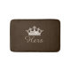 Brown bathroom mat, with graphics of a tan, brown, and white Fleur di Lys crown. Tan script text reads Hers, and can be personalized if you prefer. Makes a great gift idea for her. Comes in three sizes. Matching His mat is available.