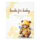Introducing our "Books for Baby" Poster, featuring an incredibly adorable teddy bear dressed as a bee. The bear is wearing a striped sweater and delicate bee wings, with a honey pot placed next to it. The background showcases beautifully painted honeycombs. This collection is exceptionally cute and unique, executed in a watercolor style. The palette used consists of sweet honey colors. Make your little one's celebration unforgettable with our charming collection.