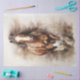 A watercolor painting of a Clydesdale brown horse galloping captures the majestic beauty and strength of this beautiful animal.
