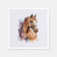 Paper napkins with an image of a brown horse head wearing a leather halter. Beautiful majestic animal.