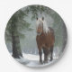 Brown Horse in a Winter Forest with Snow Falling Paper Plates
