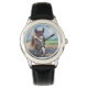 This watch is decorated with a brown horse with a white blaze on his face standing in the paddock. Animals lovers will appreciate this one. Customize by adding your monogram to the image.