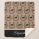 Black horse silhouettes with brown horseshoes pattern and faux burlap sherpa fleece blanket. Personalized name in white script.