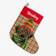Brown Labrador Retriever Red Plaid with Dog's Name Large Christmas Stocking
