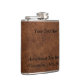 This brown leather-look flask is a classic. Customizable for any occassion. Makes the perfect gift!