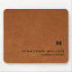 Classic Stylish Custom Monogram Name Title Brown Leather Texture Mouse Pad. Modern design single initial monogram emblem name and title or text of your choice in classic timeless block typography on a sable brown textured faux leather pattern print. Personalize with your own text. Stylish accessory, great for use at home, office or school.
