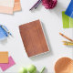 Worn brown leather look. Photography. Not real leather. Printed on the Product.