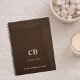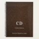 A brown faux leather photo as background and white text. Personalize and add your monogram initials, name and a title year.
