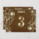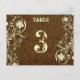 Charming table number for reception, dinner, wedding. Flat postcard style. Image of tooled leather for background.