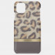 Brown and beige leopard spots pattern fur texture with gold stripe, custom monogram and a solid color on the bottom of the case.
