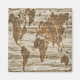 Decorative brown map of the world on wood print.