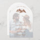 Brown Minimalist Rustic Cute Mountains Landscape Photo Wedding Save the Date Cards with QR Code and a Modern Arch Border Style.