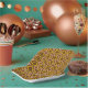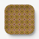 This paper plate features an all-over interlocking petal pattern in mustard yellow and peach on a rich chocolate brown background — a classic 70s geometric that looks great on a party table. The rounded square shape gives it a fun, retro feel that works for a groovy themed birthday, a fall gathering, Thanksgiving, or any casual entertaining where you want the table to have some personality.