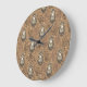 Brown Owl Illustrated Woodland Pattern Large Clock