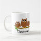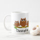 Coffee mug owl design. You can customise this mug with any text of your choice. Should you require any help with customising then contact us through the message link on this page. Owl design personalised coffee mug.