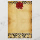 BROWN PARCHMENT DAMASK , RED WAX SEAL MONOGRAM STATIONERY