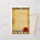BROWN PARCHMENT DAMASK , RED WAX SEAL MONOGRAM STATIONERY