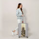 On this trendy luggage is a shimmery gold frosted glass texture along with a brown banner where you can personalize it to make it uniquely your own then below that is a brown and tan camouflage pattern for contrast. Modern chic vibes.