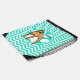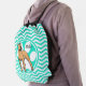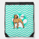 Brown Pitbull; Aqua Green Chevron Drawstring Bag