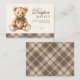 Brown Plaid Bear Baby Shower Diaper Raffle Enclosure Card