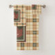 Brown Plaid Pattern Fall Maple Leaf Monogram Bath Towel Set